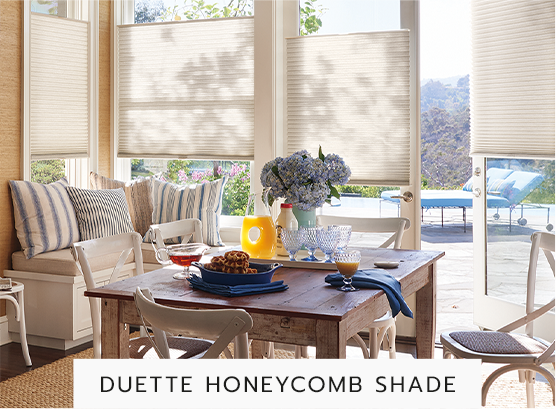 Smart design in crisp, neat pleats. Our innovative honeycomb construction creates air pockets where light meets color. Raising and lowering from top or bottom to suit the day and your activities, our Duette® honeycomb shades are an attractive, classic choice available in an impressive range of fabrics, pleat sizes, colours and textures.